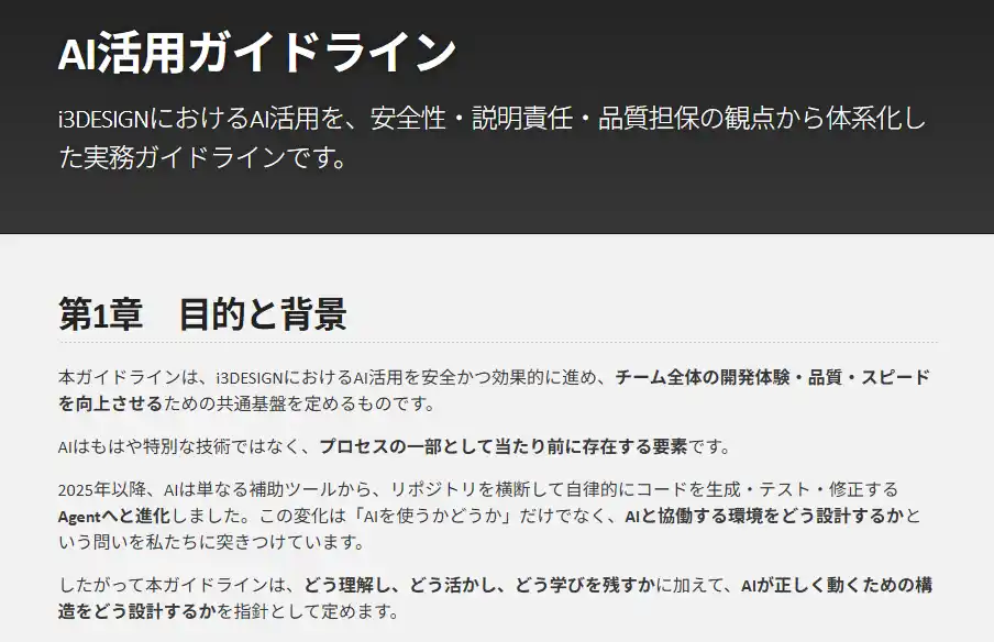 ▼ AI活用ガイドラインURL: https://i3design.github.io/engineering/ai-guideline