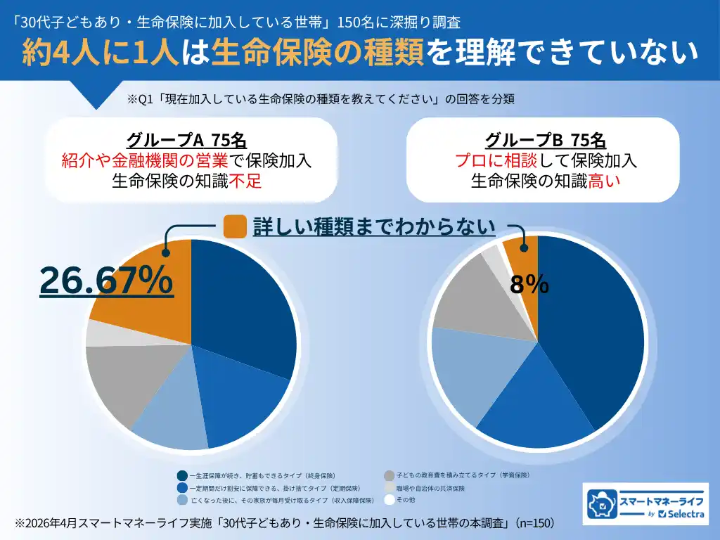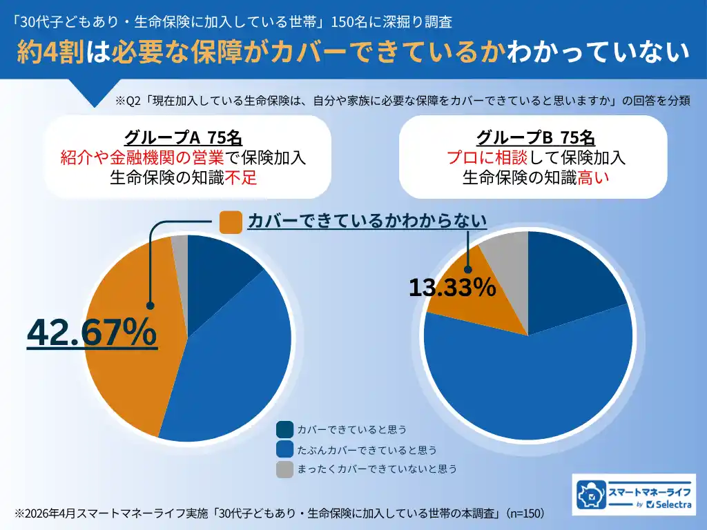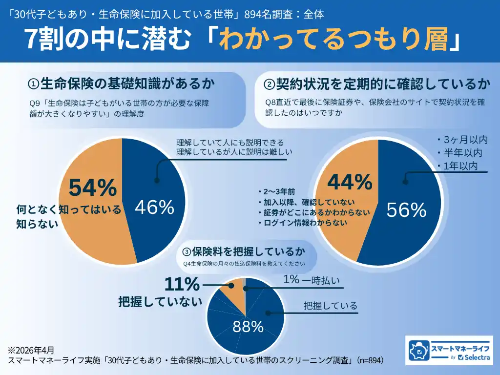 セレクトラ・ジャパン株式会社(東京都渋谷区、代表取締役:グザビエ・ピノン)が運営する、お金の情報メディア「スマートマネーライフ(https://smart-moneylife.jp)」は、30代子育て世帯894名を対象に生命保険の実態調査を実施しました。 |