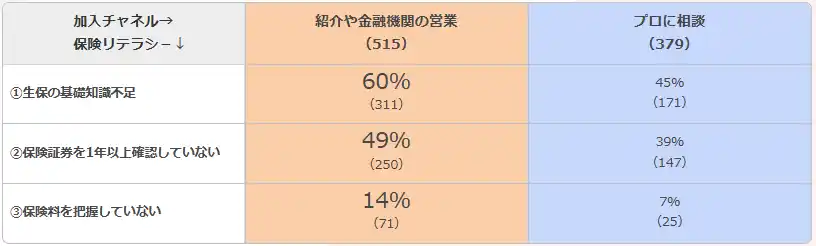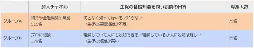ここまでで、加入チャネルの差が、保険リテラシーの差につながっていることがわかりました。 |