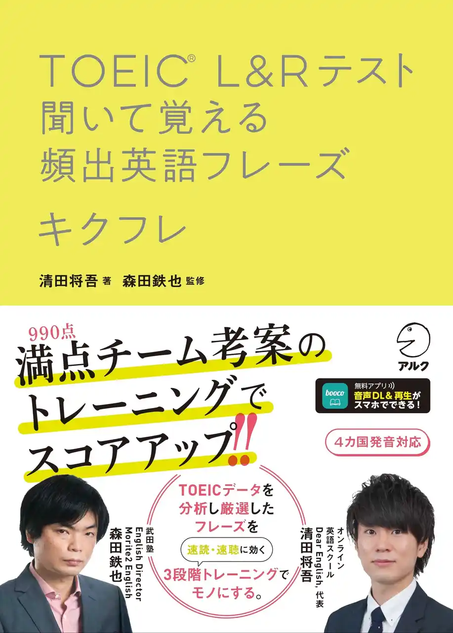 毎回のようにTOEICで満点を取得している著者2人のTOEIC受験経験から蓄積されたデータと公式問題集・英単語集のテキストの集積であるコーパスを基に収録フレーズと単語を厳選。それらの語彙を、TOEIC頻出テーマに沿ったセンテンスに組み込み、いつでもどこでも、スキマ時間に音声だけで学習できるよう音声コンテンツにしました。さらに、スコアに直結する有益情報も満載。本書を十全に活用して、英単語・英語フレーズの解像度を上げることで、スコアアップ間違いなし! |