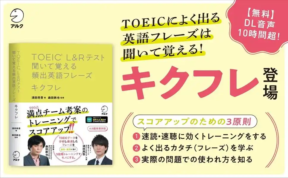 株式会社アルク(東京都品川区 代表取締役社長:田中 伸明、以下アルク)より、新刊『TOEIC(R) L&Rテスト 聞いて覚える頻出英語フレーズ キクフレ』のご案内を申し上げます。 |
