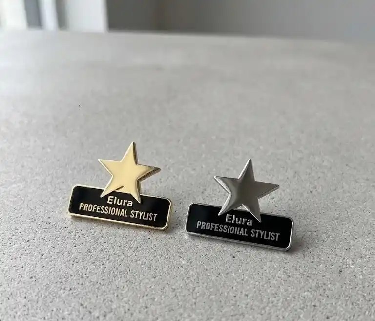 厳しい条件をクリアしたブランド認定スタイリストは〈Elura PROFESSIONAL STYLIST〉バッジを着用。トップスタイリストはゴールド、ジュニアスタイリストはシルバーを着用します。 |