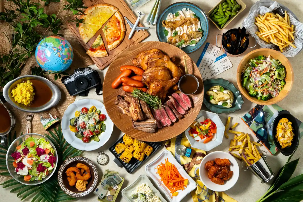 屋上という開放的な空間で、 お料理約30種食べ放題。 ドリンク全120種飲み放題。 ノンアルも充実で、飲めなくても楽しめる! 都会の空の下で旅先を感じるひとときを お楽しみください。 |