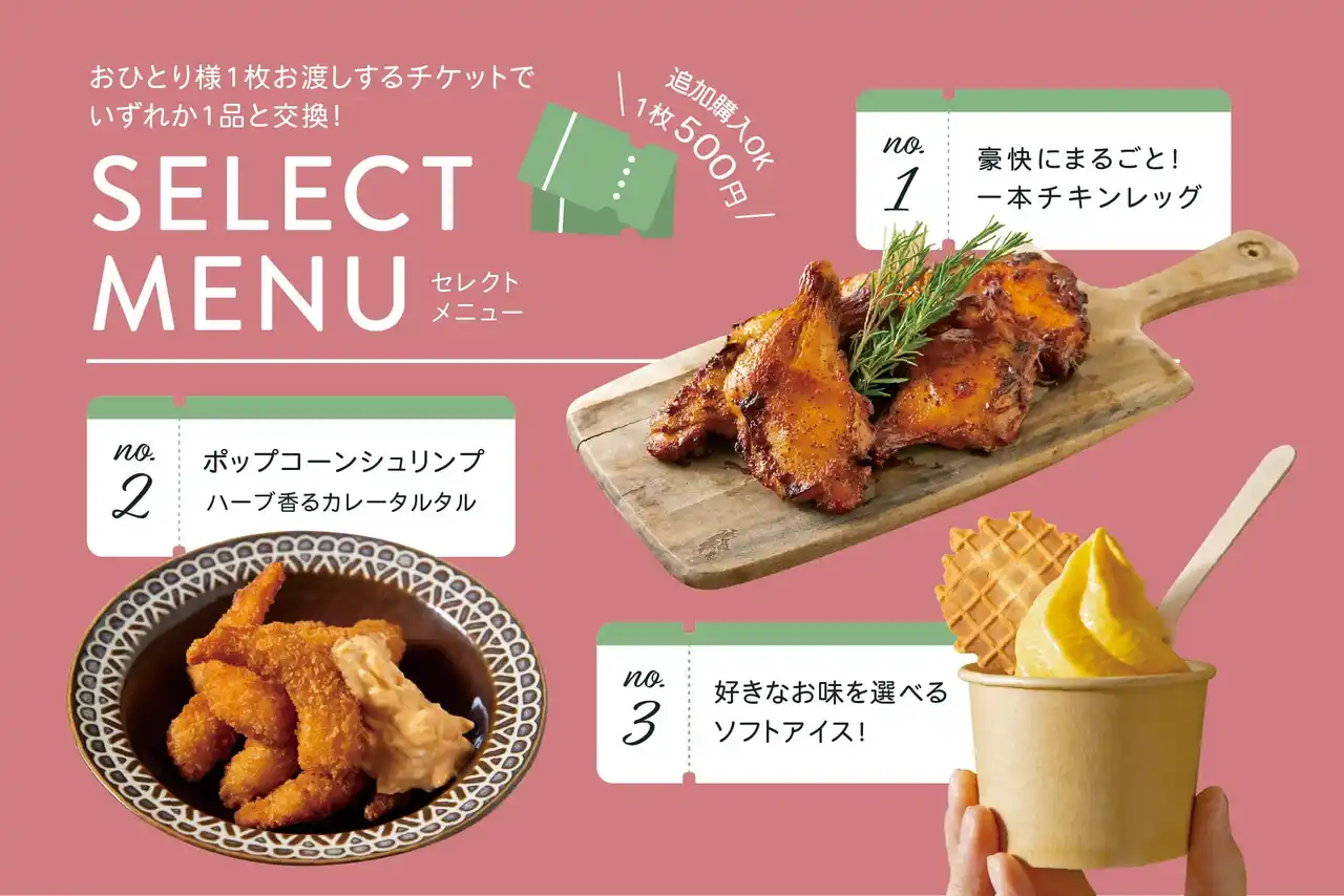 チケットは当日追加購入(1枚500円)もOKですので、ローストチキンレッグ2本も3本も食べちゃうという夢のような豪遊も可能ですよ! |