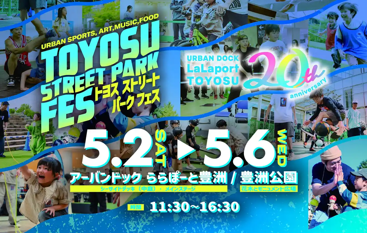 また、5月2日(土)~5月6日(水・休)の5日間、ららぽーと豊洲および隣接する豊洲公園にて都市型フェス「TOYOSU STREET PARK FES(トヨスストリートパークフェス)」(主催:株式会社MoveX)を開催いたします。スケートボード・パルクール・ブレイキンなどのアーバンスポーツ体験をはじめ、大会観戦、縁日、フード、アート、参加型コンテンツなど、多彩な楽しみが集結。子どもから大人まで、ゴールデンウィークのおでかけ先として、見て・やって・遊べる“お祭り感”あふれる5日間をお届けします。 |