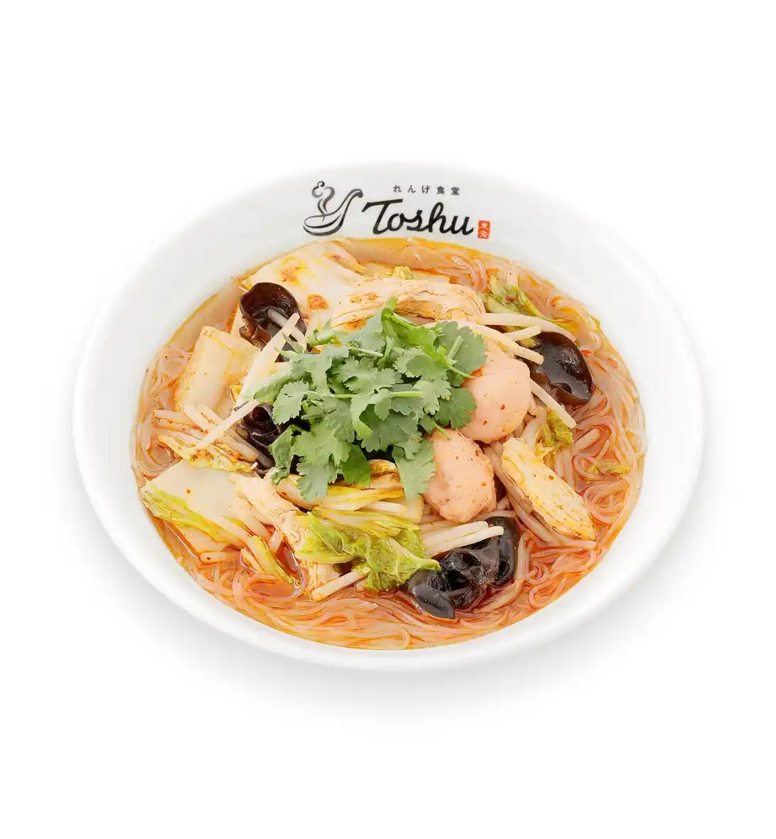 一方、「麻辣湯」は、11種のスパイス(唐辛子・山椒・花椒・ナツメグ・スターアニス・シナモン・ジンジャー・陳皮・フェンネル・ローレル・クローブ)と自家製辣油を使用し、“麻(しびれ)”と“辣(辛さ)”が織りなす奥行きのある味わいを実現しました。麺は、ヘルシーに楽しめる龍口春雨と、食べ応えのある中華麺の2種類からお選びいただけます。さらに、「大辛」(税込価格33円)や「パクチー増量」(税込価格110円)など、お好みに合わせたカスタマイズも可能です。 |