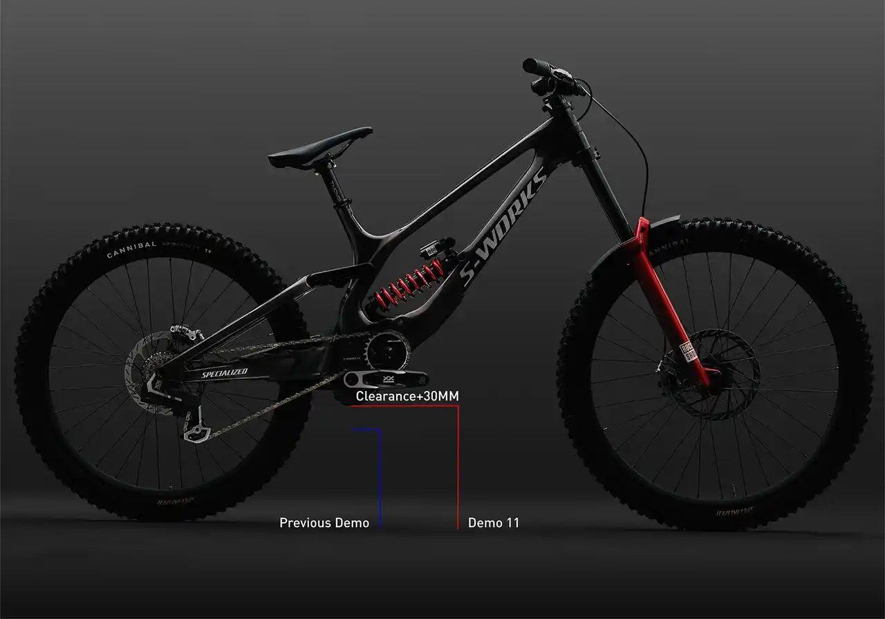 Demo 11のジオメトリーは、サスペンション特性を最大限に引き出し、限界域でのスピードを支えるために、スペシャライズドグラビティチームと協業して開発されました。 |