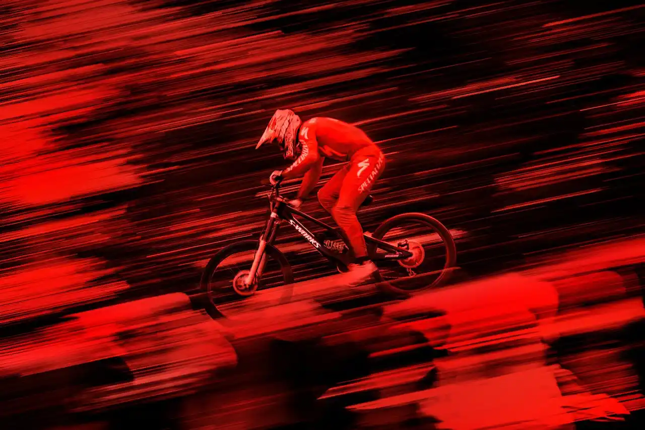 そしてスピードが上がり、路面が荒れるほど、このセルフアライニング効果はより大きな差を生み出します。負荷が増すにつれ、シャシーは従来の設計を大きく上回る面内整列性を維持し、ホイールは狙ったラインを正確にトレースします。修正は最小限に抑えられ、無駄なエネルギー消費も減少。予測性と信頼性、そしてコントロール性が高まり、あらゆる要素がライダーをラインから弾き飛ばそうとする状況でも、より高いスピードを引き出せます。これが、ロイックのようなトップライダーが即座に感じ取った違いでした。バイクが常に安定した挙動を保つことで、余計な意識や修正を必要とせず、走りに集中し続けられるのです。 |