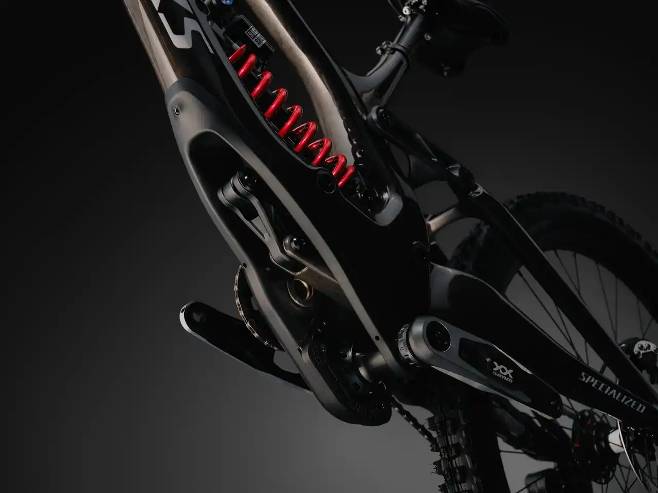 最終的にリアホイールを駆動するチェーンリングを精密に配置することで、チェーンによる力はサスペンションから切り離され、サスペンションはストローク全域にわたって完全にアクティブに機能します。ペダルキックバックを生むことなく、後方へのアクスルパスを最適化。角の立った障害物もクリーンに吸収し、勢いを維持します。スピードもリスクも最大になる場面で、ライダーは常に冷静さを保つことができます。 |