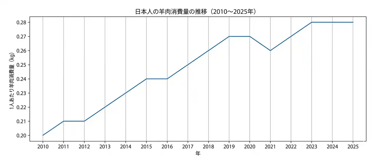 | 日本で流通する羊肉の約7割はオーストラリア産とされており、同国からの輸出量は2015年の約1.1万トンから2025年には約1.7万トンへと増加。さらに、日本人一人あたりの羊肉消費量もこの10年で約1.4倍に増加しており、羊肉は“特別な食材”から“日常的に選ばれる食材”へと変化しています。こうした背景から、羊肉は今後さらなる広がりが期待される食材として注目されています。(出典:ミート・アンド・ライブストック・オーストラリア) | ||||||||