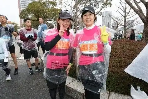 北九州マラソンの醍醐味であり、最大の難所でもあるのが、後半に待ち構える門司・門司港エリアの「海風」です。スタート時の寒さを凌いだ後に一度捨ててしまった防寒具を、最も必要とされるタイミングで再び手渡す。この「後半戦でのポンチョ再配布」は、ランナーの体調変化を予測した「伴走型」のサポートとして、ランナーファーストな取り組みとのお声をいただきました。 |