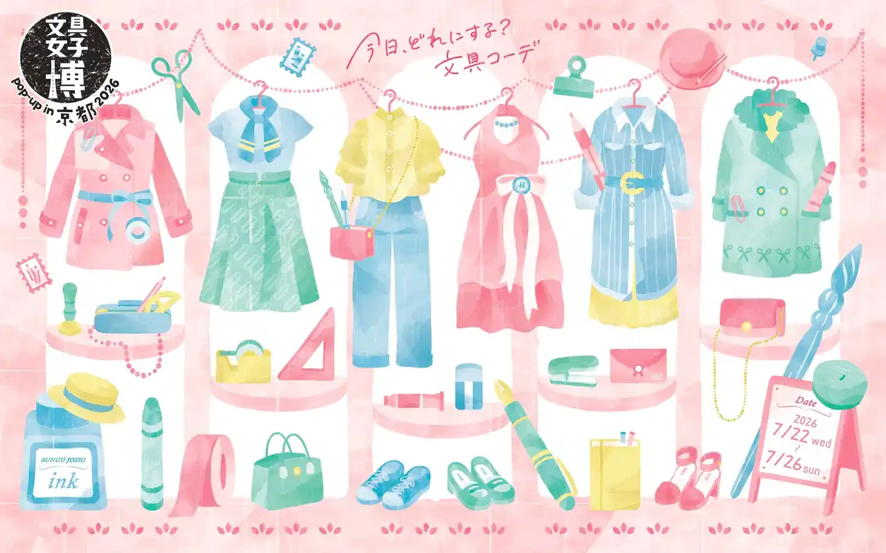 今回の開催テーマは「今日、どれにする?文具コーデ」。毎日のコーディネートを楽しむように、文具を選ぶときめきを感じて欲しいという想いを込めています。会場は各線京都駅直結でアクセス抜群!お仕事や学校帰りにふらっと洋服を試着するような感覚で、気軽にお立ち寄りいただくのにもぴったりです。ぜひこの機会に「文具女子博 pop-up in 京都2026」にご来場ください。 |