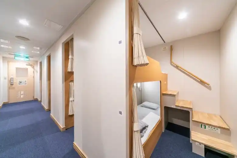 往復の客室はスタンダード洋室を利用。対面式ではない2段ベットでベッドサイトにはカーテンもありプライベート空間を確保。 |
