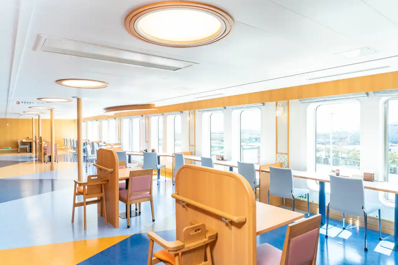 船内には船旅を演出するレストランやロビー、瀬戸内航路では初となる露天風呂も全船に完備。 |