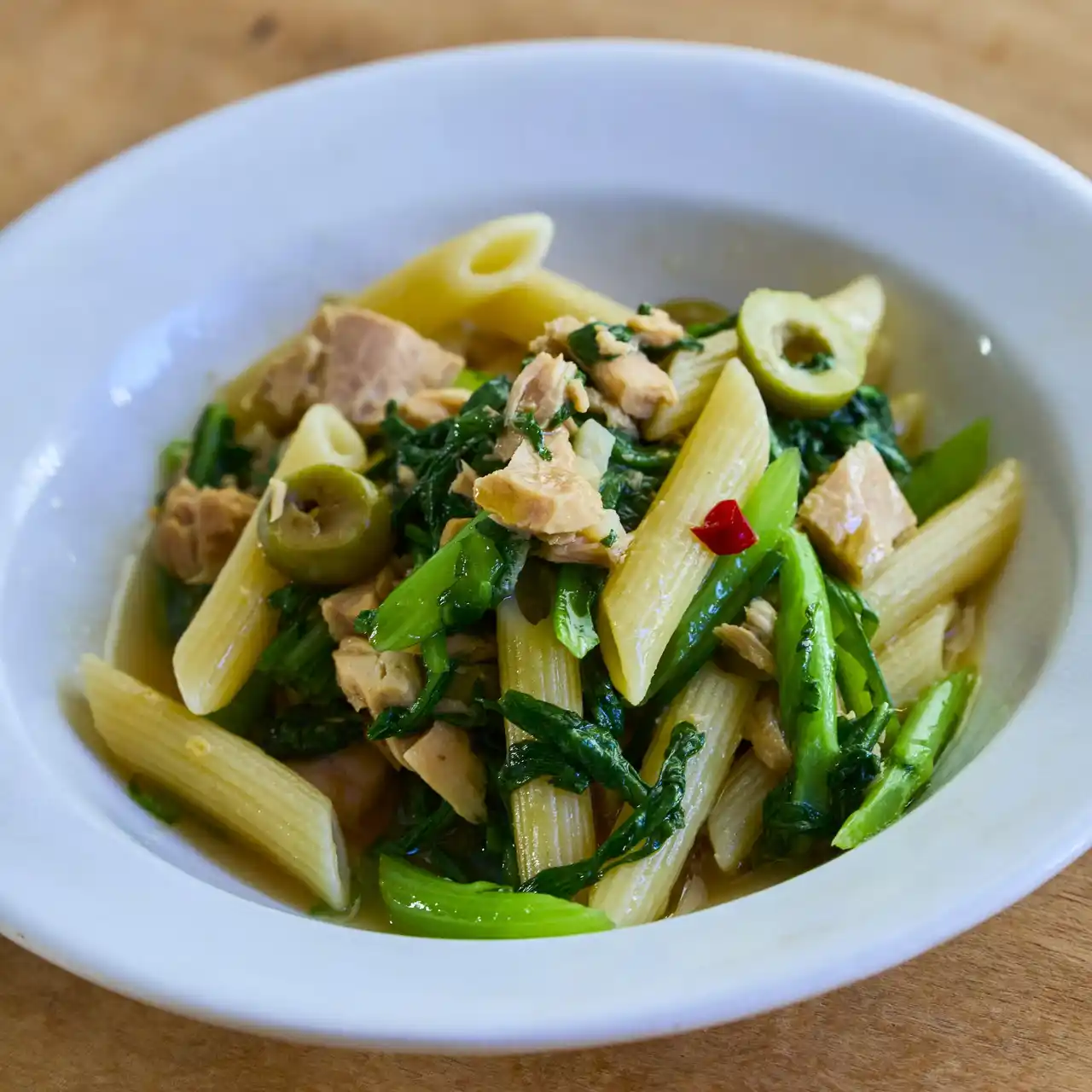 ほろ苦担当の私は、案外重宝されるんです。「春菊とツナのペンネ」 |