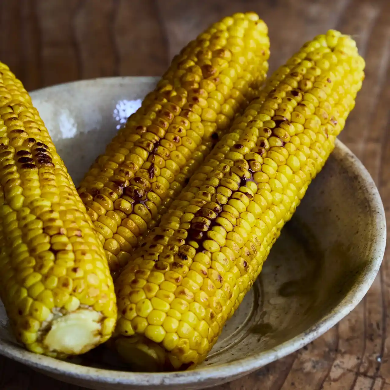 焼く前に、まずはお水を一杯飲ませてください。「フライパン焼きとうもろこし」 |