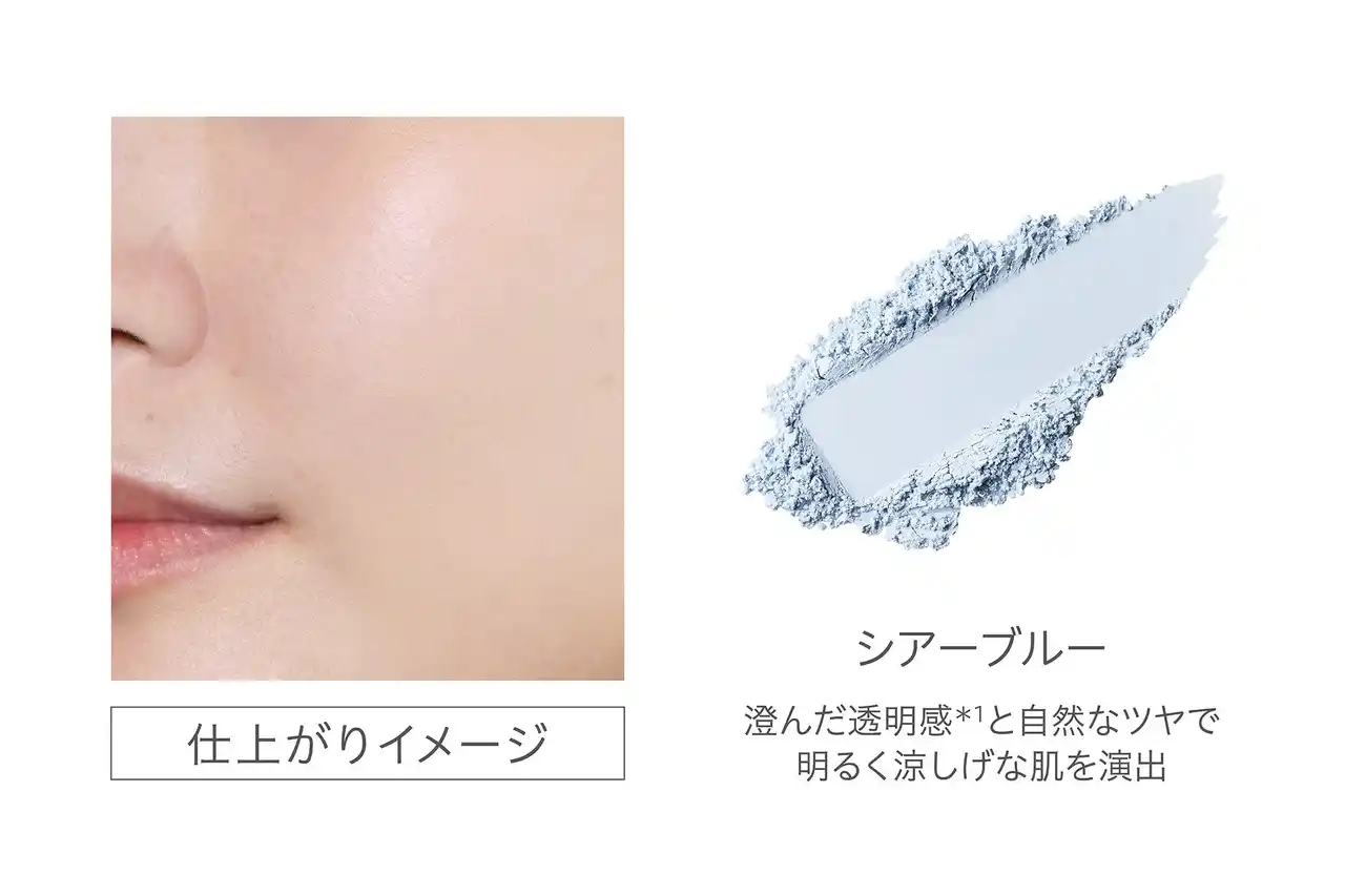 淡いブルーのカラー補正効果で肌の赤みを抑え、澄んだ透明感*¹と自然なツヤをプラスします。 |
