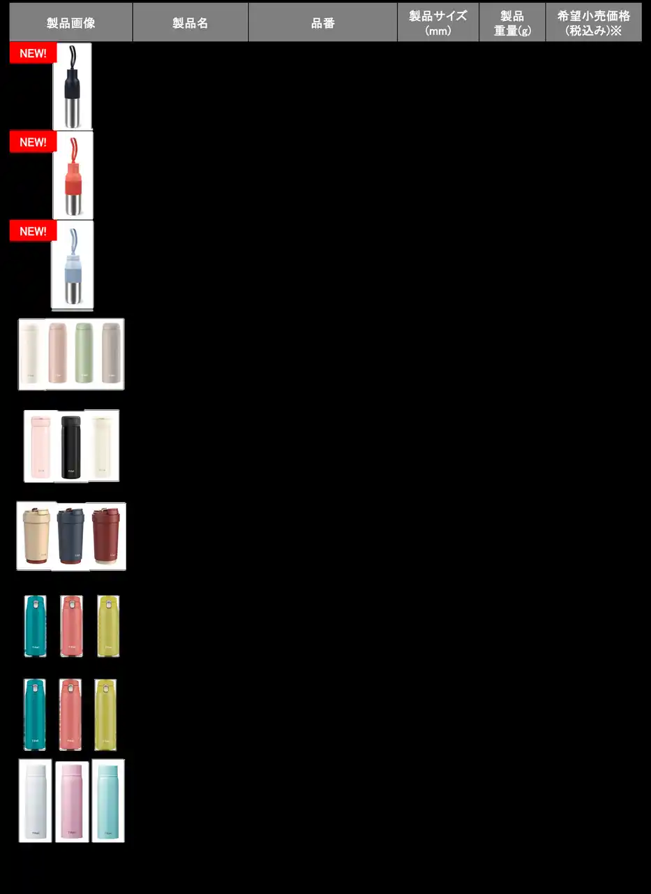 ラインナップは、簡単に開閉できる新感覚の【フリップタイプ】と、ストレーナー付きの【スクリュータイプ】の2タイプ。どちらも飲み口がカバーされる構造で、清潔に保てます。 |