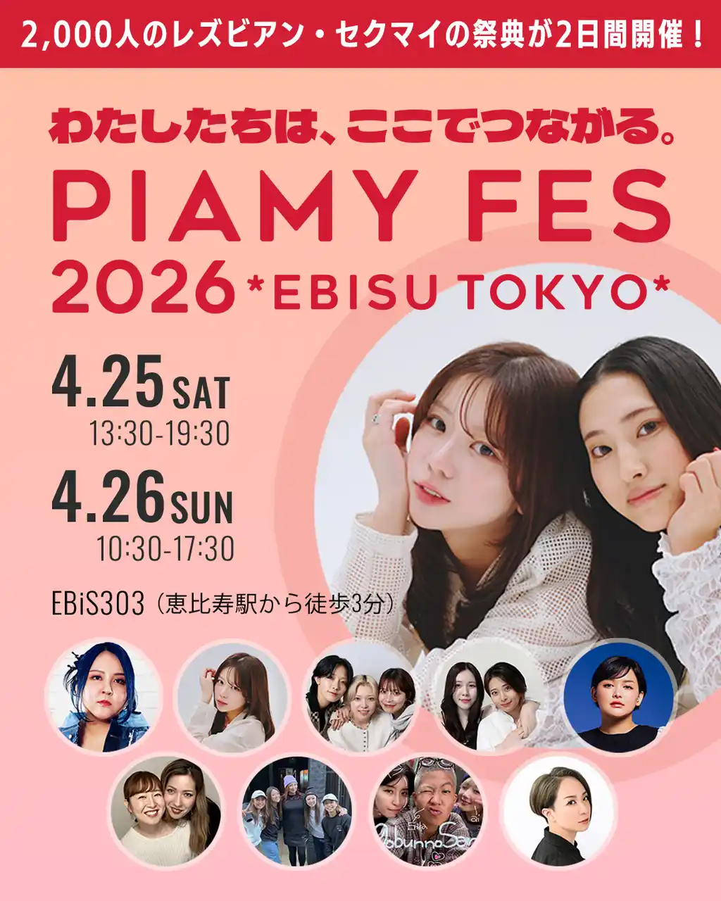 PIAMY FESは、セクシュアルマイノリティがつながるSNS「PIAMY」を運営する株式会社アルトレオスが主催する、日本最大級のセクマイ女性向けイベントです。 |