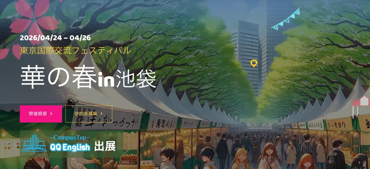 株式会社QQ English(本社:東京都新宿区、代表取締役:藤岡頼光、以下QQEnglish)は、2026年4月24日(金)~26日(日)に池袋西口公園野外劇場で開催される国際交流イベント「華の春」にて、英語を“実際に使う”体験型ブースを出展いたします。本イベントでは、英語を「勉強する」のではなく、「ちょっと使ってみる」体験を提供します。英語でドリンクを注文し、フィリピン人教師との会話の中でガチャガチャを楽しむなど、来場者自身が英語を使う場を用意しています。こうした体験を通じて、来場者には「英語が通じた」という小さな成功体験とともに、フィリピン人教師との交流を通じた異文化体験を提供します。QQEnglishは、この一歩をきっかけに、英語を“学ぶ”から“使う”へと行動が変わる状態を目指します。 |