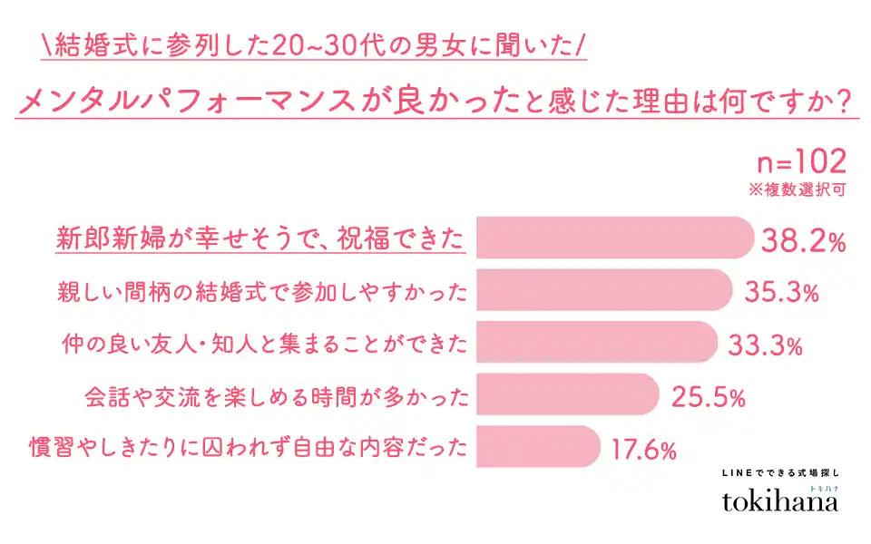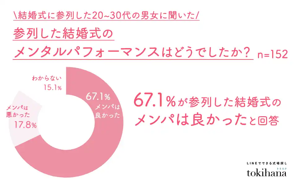 )』を運営する株式会社トキハナ(本社:東京都港区、代表取締役社長:安藤 正樹、以下「トキハナ」)は、結婚式を実施した20~30代の主催者および参列者370名を対象に、近年注目されている新たな価値観の指標である「メンタルパフォーマンス」について調査を実施しました。