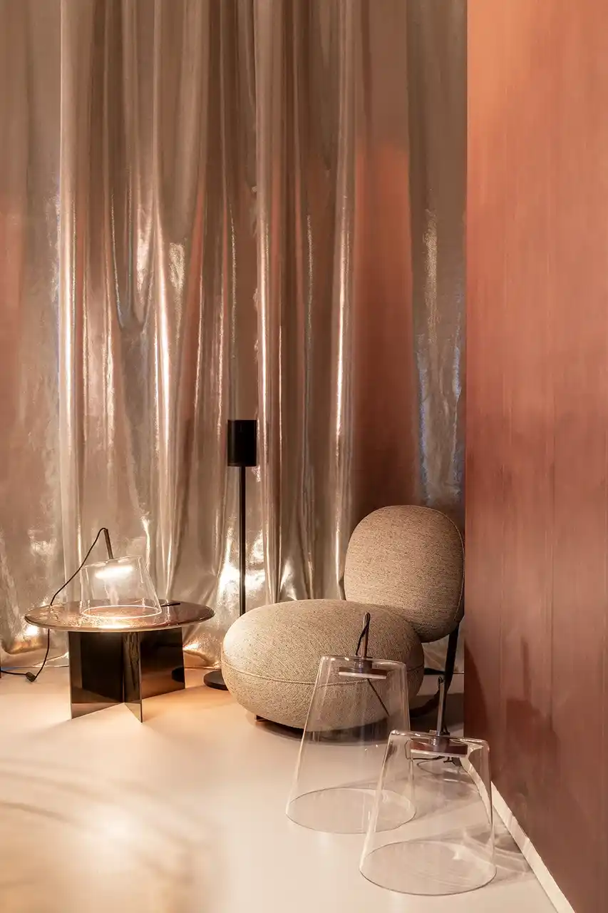 ミラノの気鋭の建築・デザインスタジオStudiopepeがキュレーションする本インスタレーションは「火」をインスピレーションに、インテリアを「生きたツール」として再解釈しています。 |