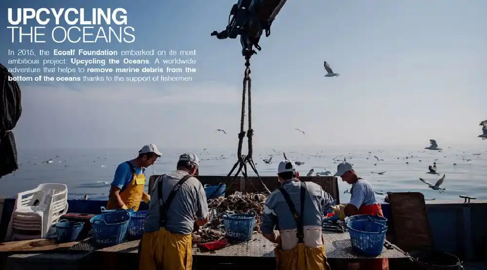「ECOALF」が主導する海洋保全プロジェクト「UPCYCLING THE OCEANS (アップサイクリング ジ オーシャンズ)」。2015年より漁師の方と協業して回収・分別した海洋プラスチックをアップサイクルし、OCEAN