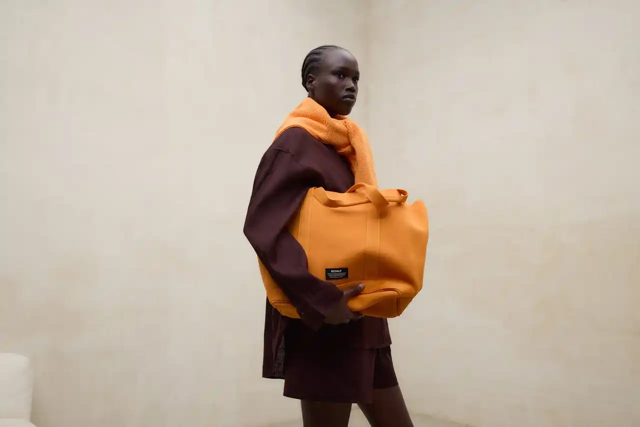 オーシャンヤーンからつくられたバッグ「OCEAN TIKA」シリーズは軽量で耐久性に優れています。今シーズンはどんなスタイリングにも取り入れやすいブラックと、アクセントにぴったりのシーズナルカラー、タンジェリンオレンジの2色が登場。 |