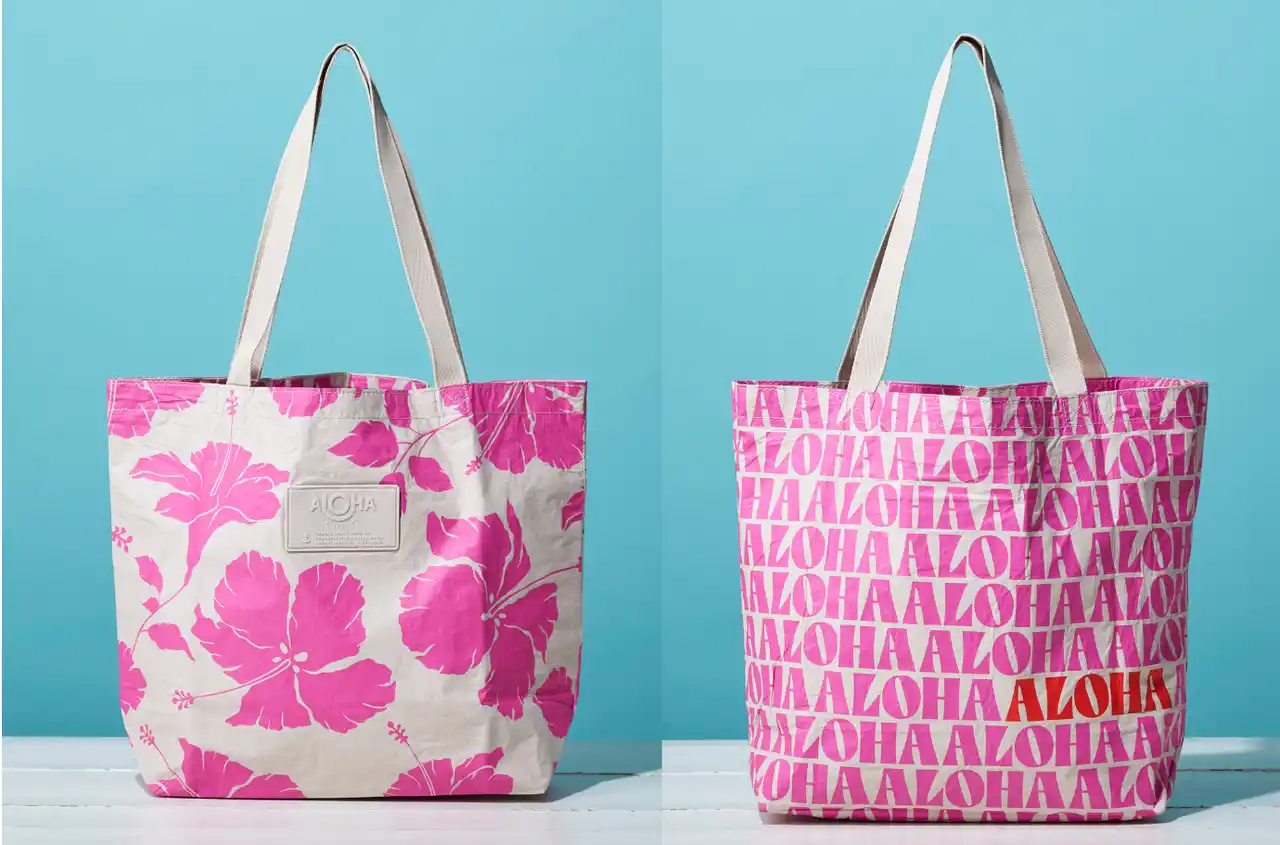 ウォータープルーフの生地を使ったバッグが人気の「アロハコレクション」。トロピカルなデザインのバッグは防水性に優れており、濡れた水着などを持ち運ぶのにもぴったり。 |