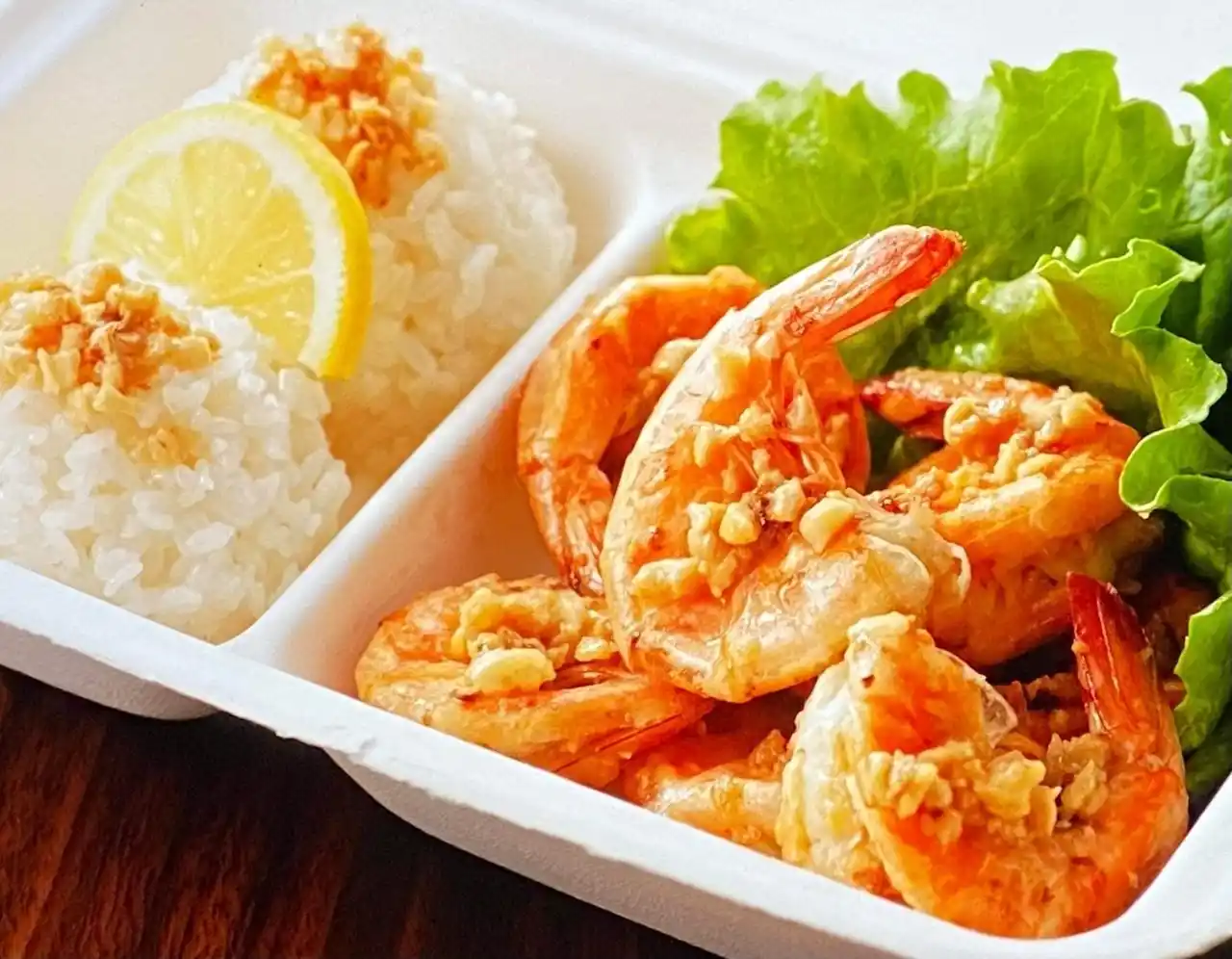 【実演】[Ahuahu south loco style]ガーリックシュリンププレート(7ピース) 1,741円 |