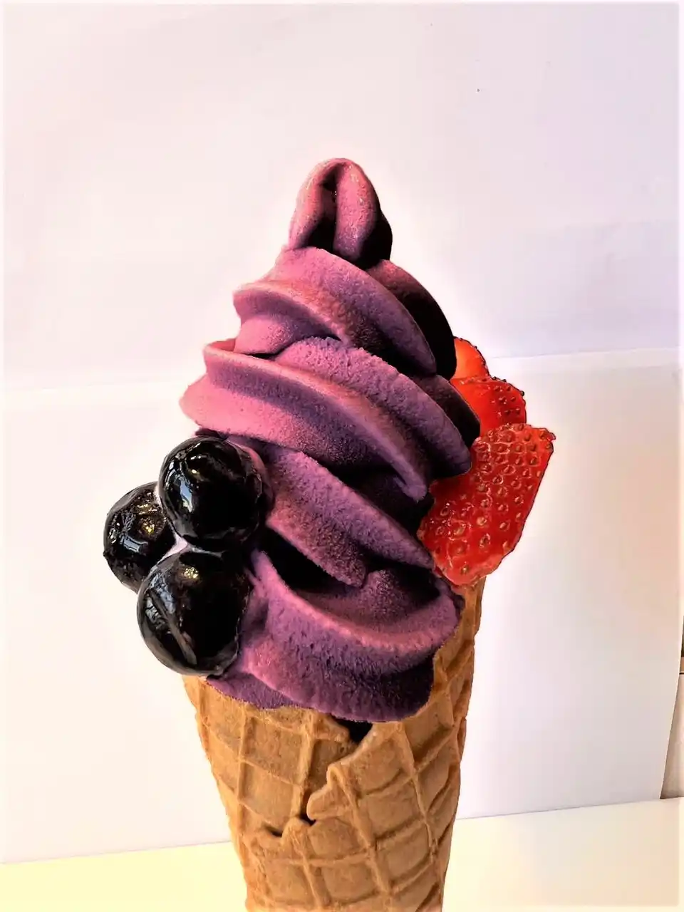 アサイーを生地に練りこんだ、見た目も鮮やかなソフトクリーム。 |