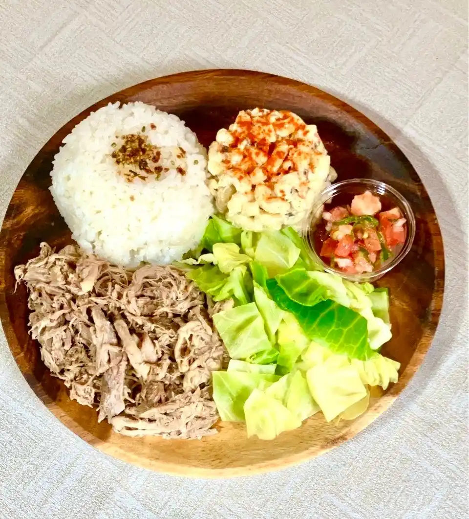 【実演】[キモズハワイ&トゥイードルズ]カルアポークプレート(1人前) 1,650円 |