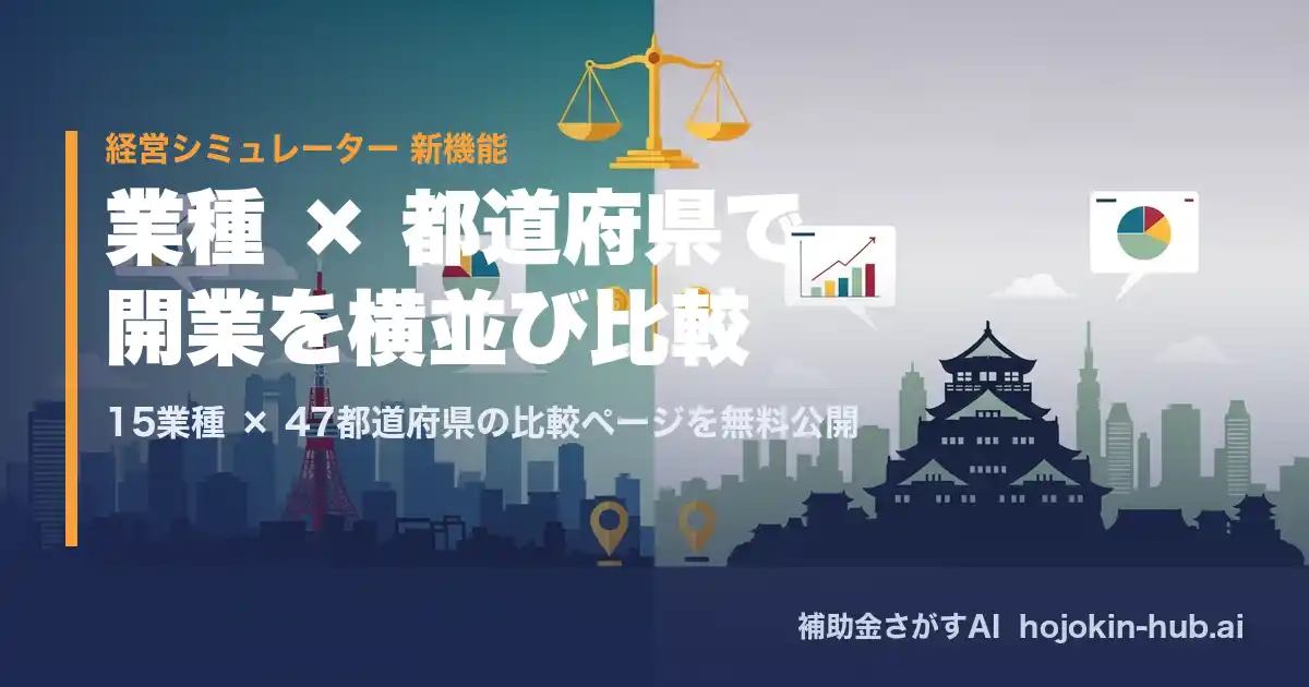 株式会社X-HACK(本社: 東京都品川区、代表取締役: 松田信介)は、補助金・助成金の無料検索サービス「補助金さがすAI」( https://hojokin-hub.ai )の経営シミュレーターに、業種×都道府県の比較ページ機能を追加しました。 |