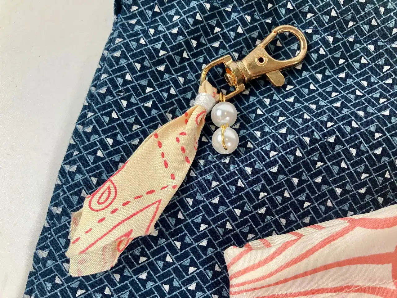 | 完成した巾着には、再利用パールをチャームとして付けていただきます。 | ||||||||||||||