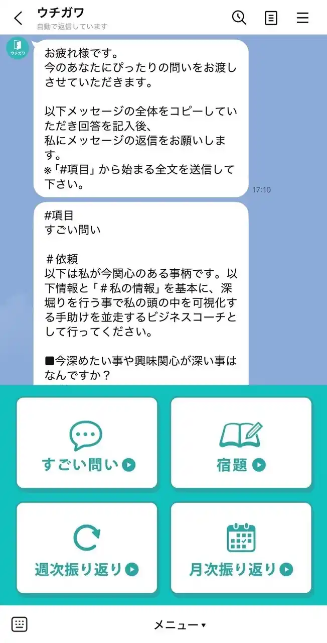 1.AIコーチング「ウチガワ」(毎日) |