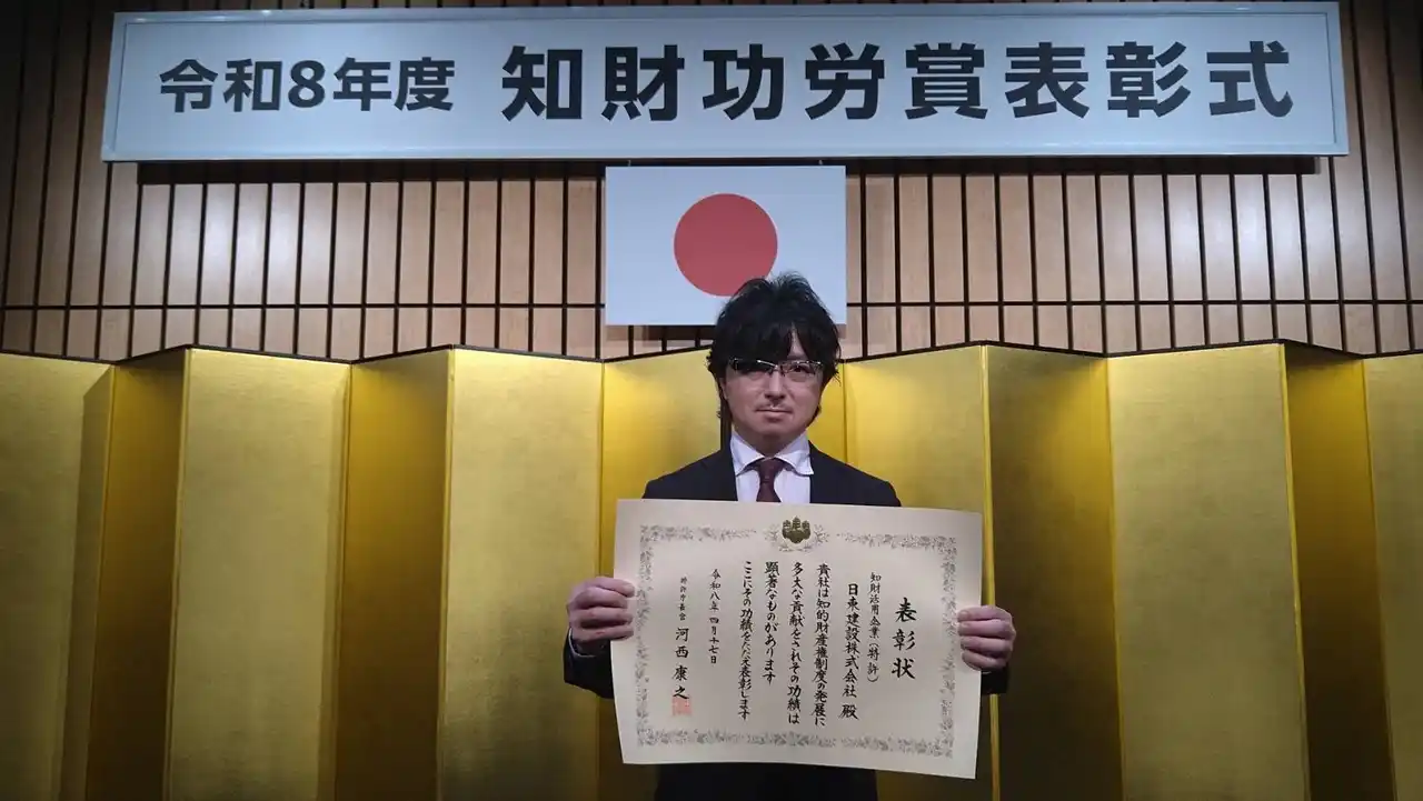 日東建設株式会社(本社:北海道紋別郡雄武町、代表取締役社長:久保毅剛)が、経済産業省 特許庁の令和8年度「知財功労賞 特許庁長官表彰」を受賞したことをお知らせいたします。(日東建設ホームページ) |