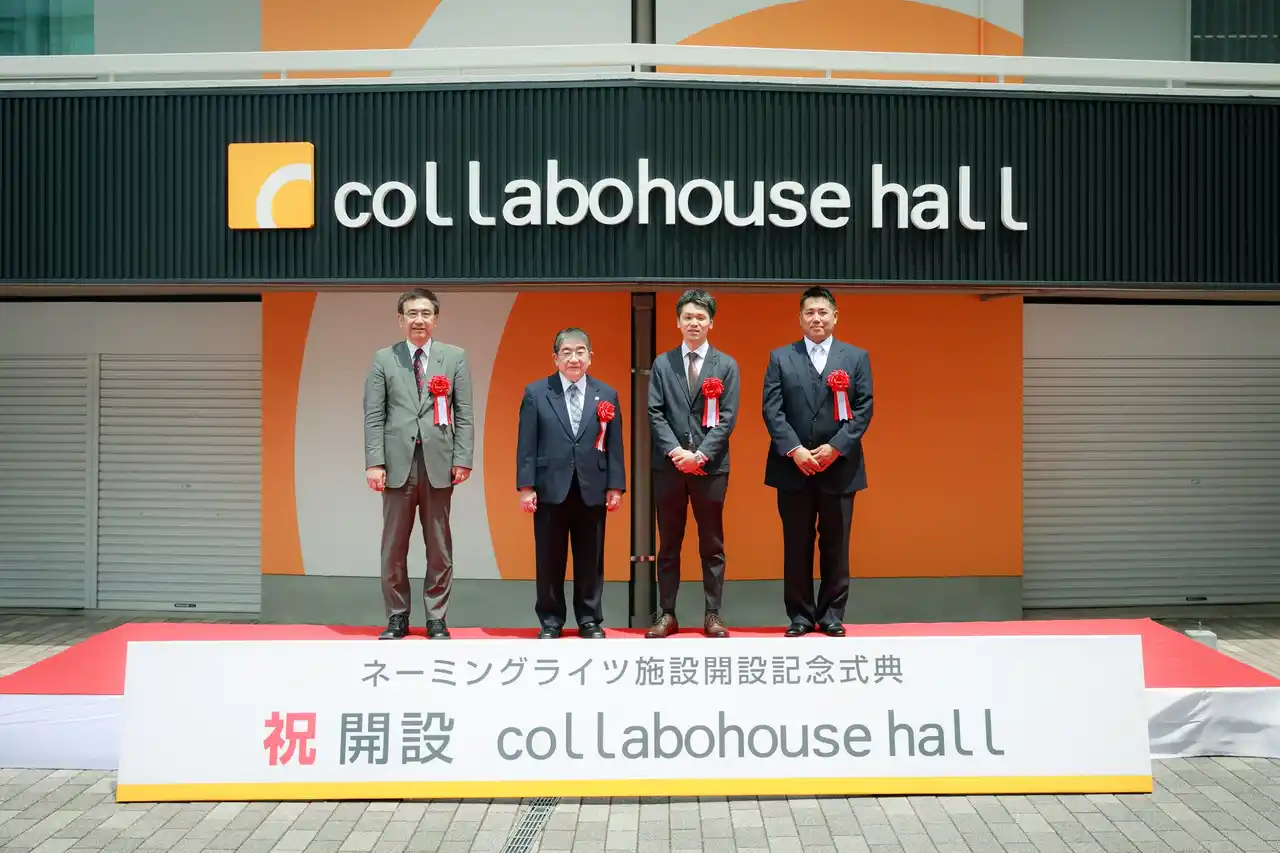 ▲昨年のネーミングライツ取得を記念して行われた除幕式の様子 |