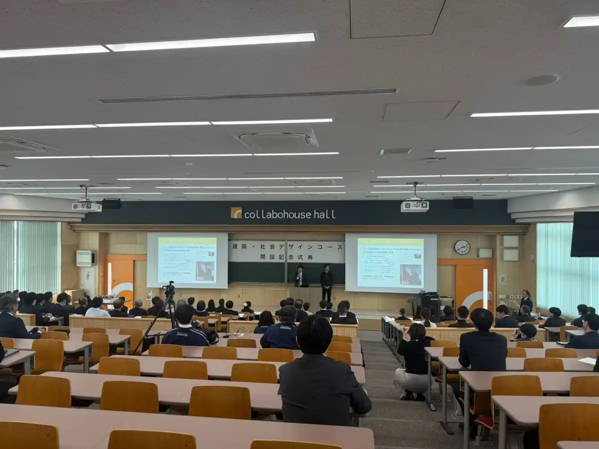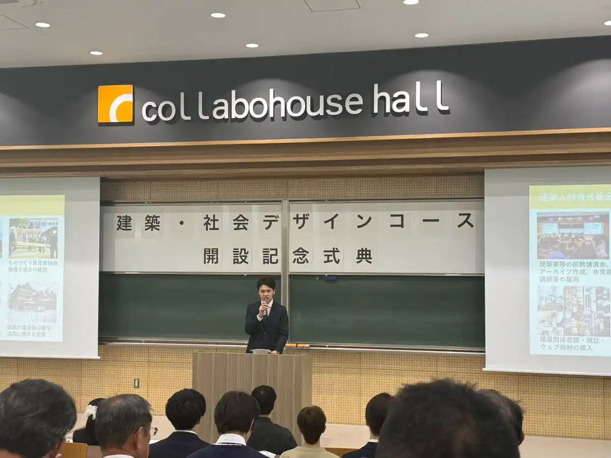本コースは、建築設計にとどまらず、地域社会やまちづくりまでを包括的に捉える人材育成を目的としており、人口減少や地域課題が顕在化する中で、実践的な知見を持つ人材の輩出が期待されています。今回の開設記念式典は、こうした取り組みの第一歩として、産学連携しながら地域に根ざした建築・まちづくりを推進していく姿勢を示す機会となりました。 |