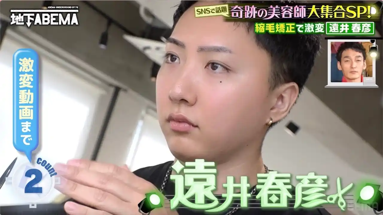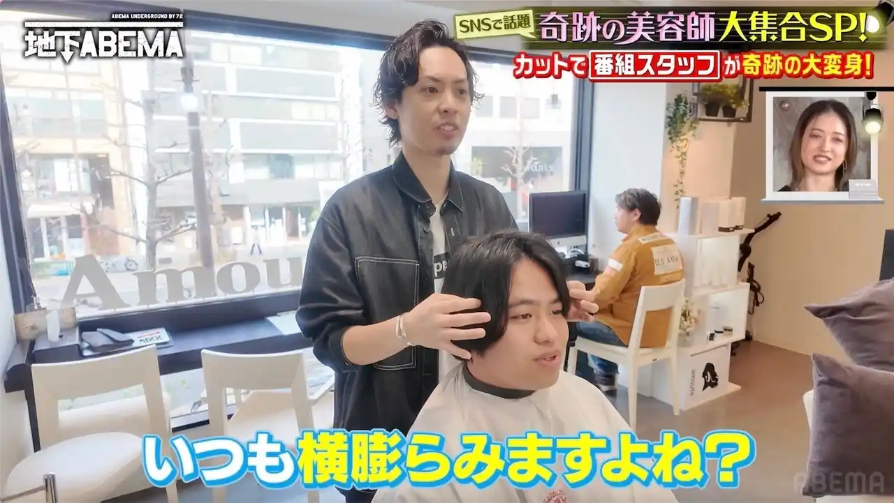 ほかにも、縮毛矯正の動画などでSNS動画総再生数3億回を突破したという「Tia.表参道」の美容師・遠井春彦さんは、「僕が担当しているアイドルのファンの方が“推しと同じ前髪にしたい”と来店。気づいたらアイドルとしてデビューしていた」と語り、スタジオは仰天。さらに、“激変動画”の総再生回数3億回超えの東京・恵比寿「Amoute」の代表・横井拓徹さんの凄腕カットを番組スタッフが体験することに。果たして気になる仕上がりは?『ななにー 地下ABEMA』#114は、現在「ABEMA」にて無料見逃し配信中です。 |