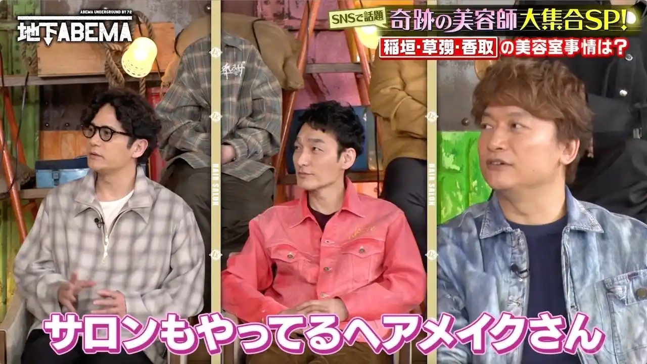 さらに番組では、EXIT・りんたろー。が稲垣、草彅、香取の美容室事情に迫る一幕も。「3人は美容室とか行かないんですか?」という質問に対し、香取が「(僕たちは)現場のヘアメイクさんの自宅とか、あと、サロンもやってるヘアメイクさん(のところ)」と回答。貸切状態でカットしてもらっているという知られざるプライベートが明らかになりました。 |