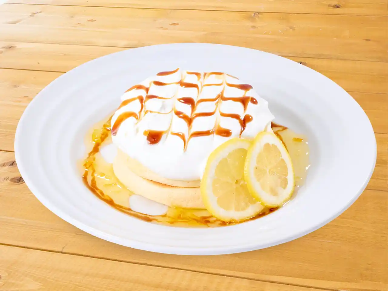| ・ふんわりとした生地は焼き手の技術が問われる職人技のパンケーキです。低脂肪でフレッシュなリコッタチーズと卵黄を練りこみ、卵白で泡立てたメレンゲを加え、注文を受けてから一枚ずつ丁寧に焼き上げています。 | ||||||||||||
