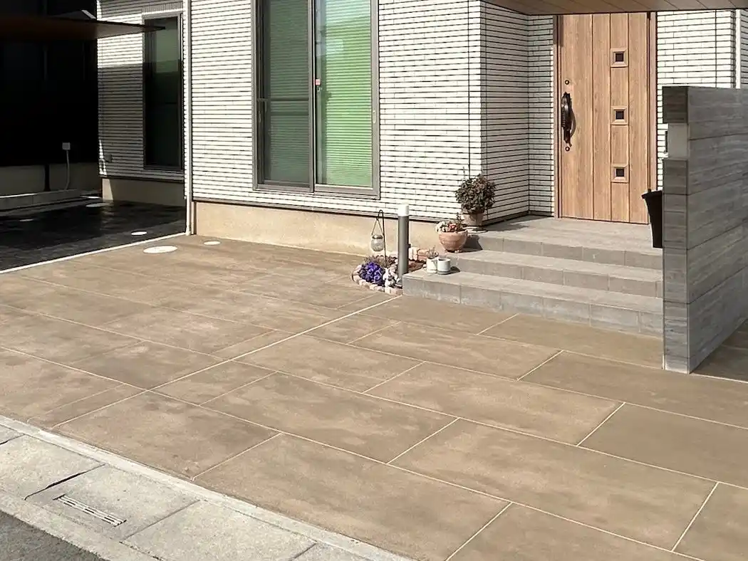 外構の床仕上げとして、本物のタイルは高い完成度を持つ一方で、 |