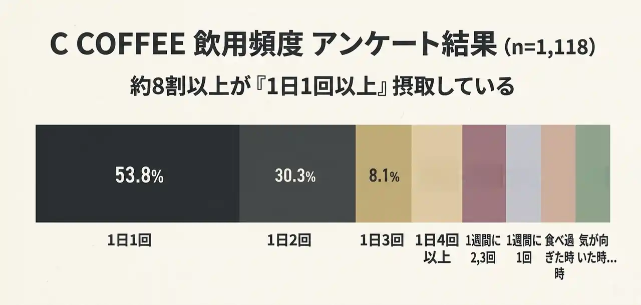 「C COFFEEを1日1杯以上飲む」会員は9割超え。1日3杯以上も約1割に |