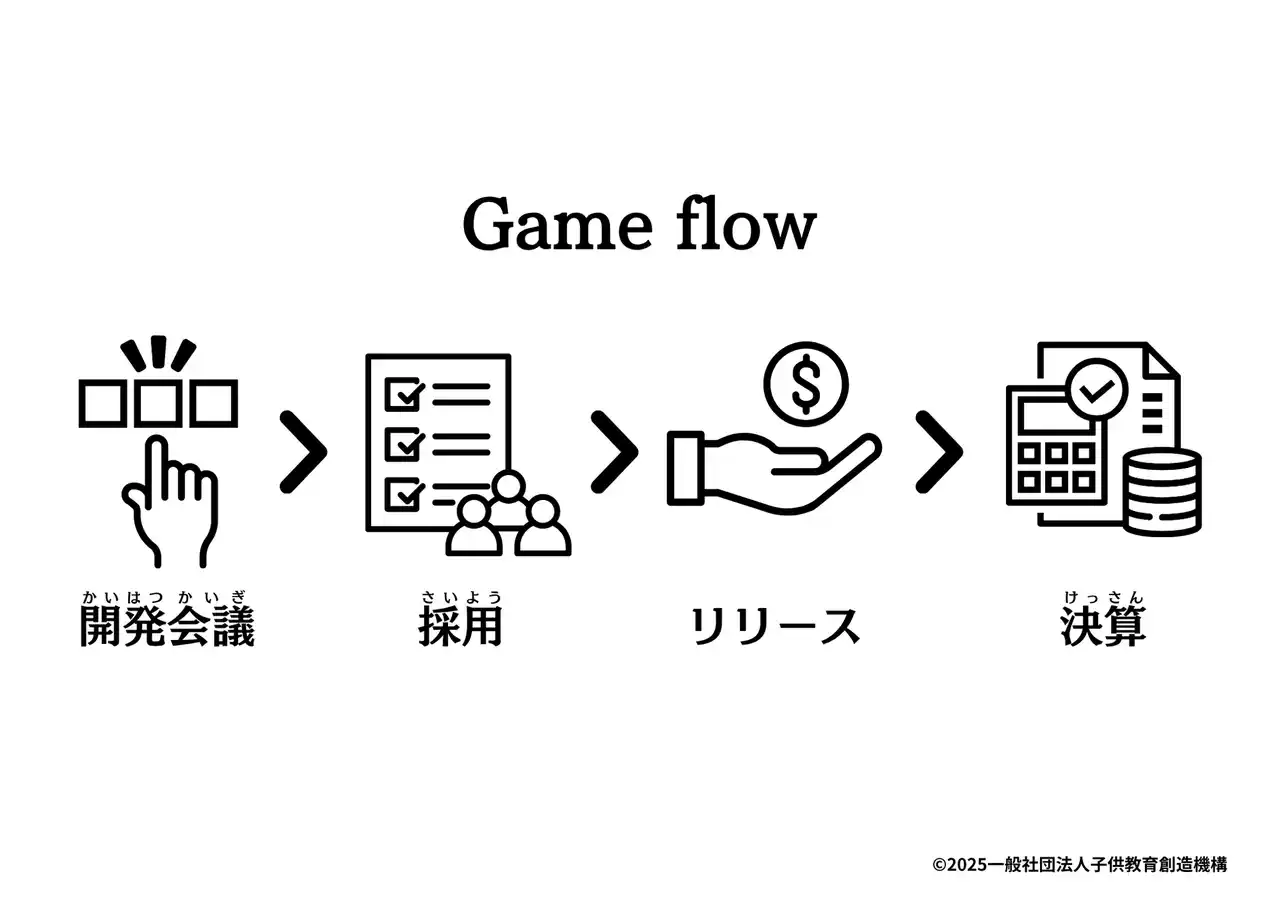 | お子さんにとって身近で関心の高い「ゲーム開発」を事業テーマに設定。自分が「ゲーム会社の社長」になるというロールプレイを通じて、当事者意識を持ってビジネスの仕組みに没入できる設計です。 | |||||||||