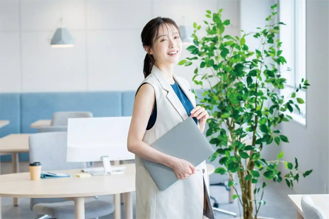 | ジャケットを羽織って打ち合わせへ。ユレ防止パネルと3Dカップの効果で、バストのユレやストラップのズレを気にすることなく、仕事に集中できます。 | |||||||||||||||||||