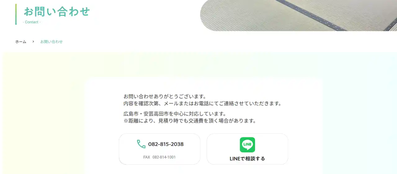 納得の畳選びをサポートしますので、気になることがございましたら気軽にお問い合わせください。 |