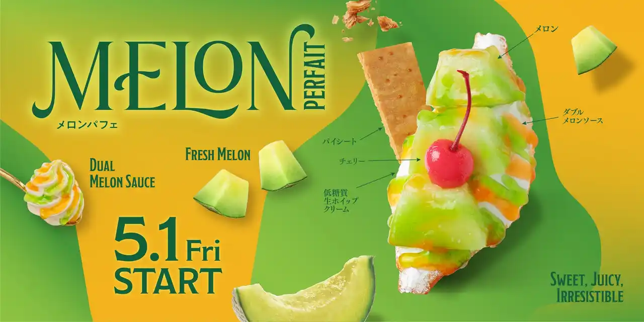 【商品概要】 商品名:メロンパフェ(MELON PARFAIT) 発売日:2026年5月1日(金) 販売店舗:Age.3 国内全店舗 |