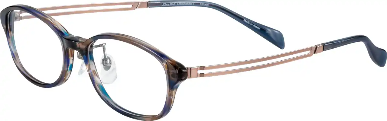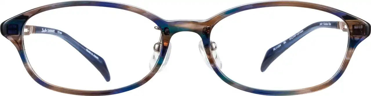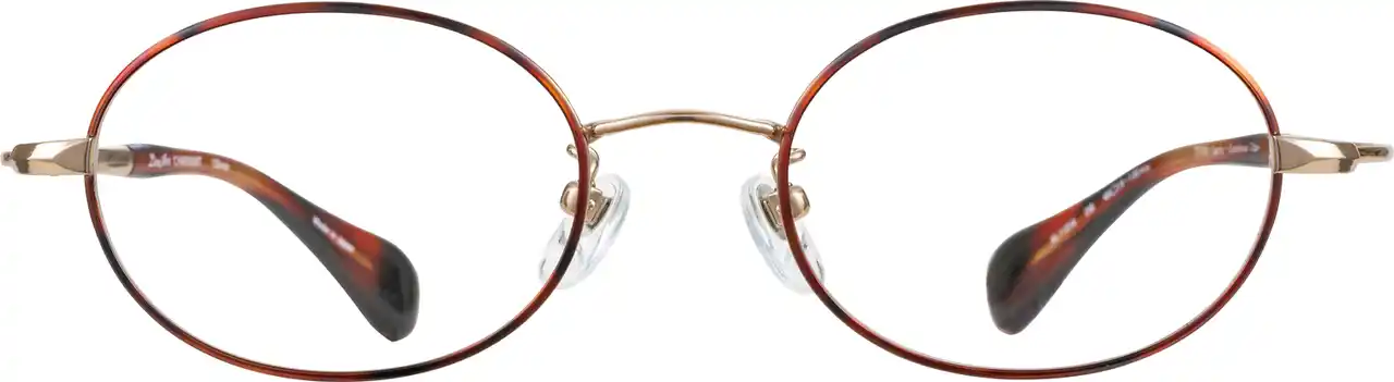 すっきりとした印象のオーバル型フレーム。立体感のあるリムとヨロイ、フロントのデミ柄がさりげないアクセントに。 |