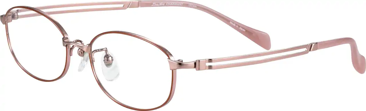 やさしい曲線のスリムなバレル型フレーム。肌になじむアプリコットカラーがお顔にそっと溶け込みます。 |