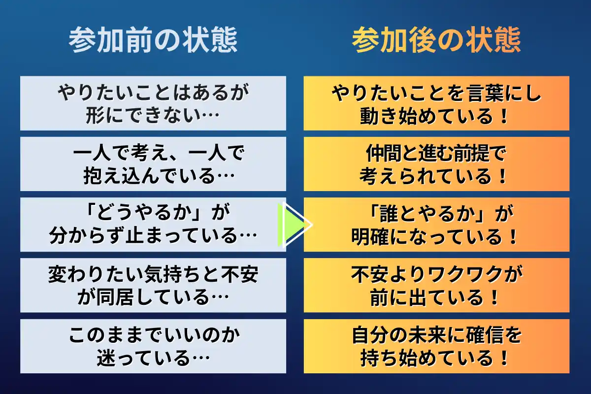 本イベントは、ただのセミナーではなく “人生が動き出すきっかけ”となる場を目指しています。 |